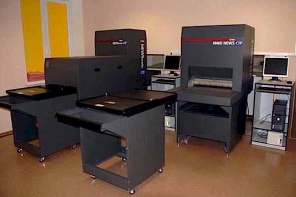 Вывод пластин может осуществляться на двух производственных линиях, каждая из которых включает в себя устройство прямого экспонирования пластин от компании «ECRM» (США) и проявочный процессор «Raptor 68 HW Polymer» от «Glunz & Jensen» (Дания). Линии отличаются тем, что экспонирующее устройство на одной из них (основной) оснащено «Пин-ап» автоматической подачи пластин (модель «NewsMatic»), а на другой (резервной) подача пластин происходит вручную (модель «News»).